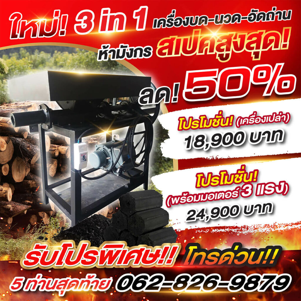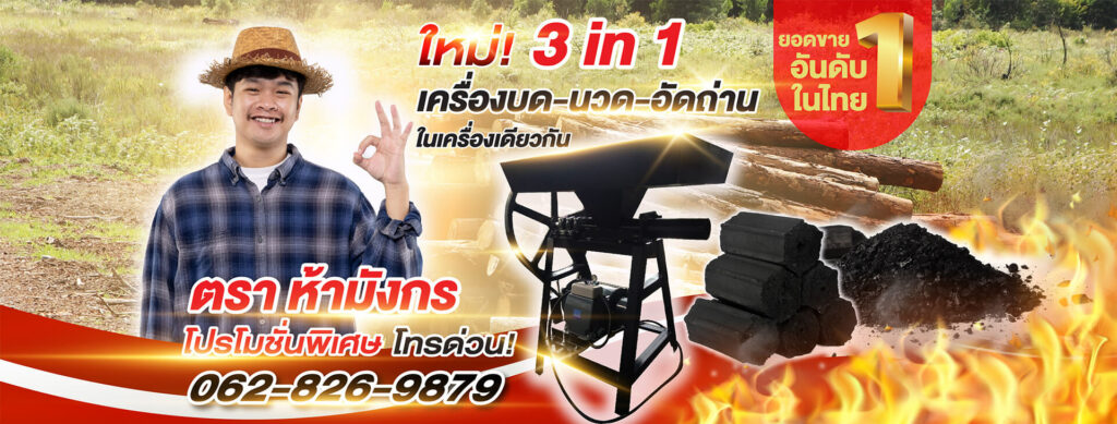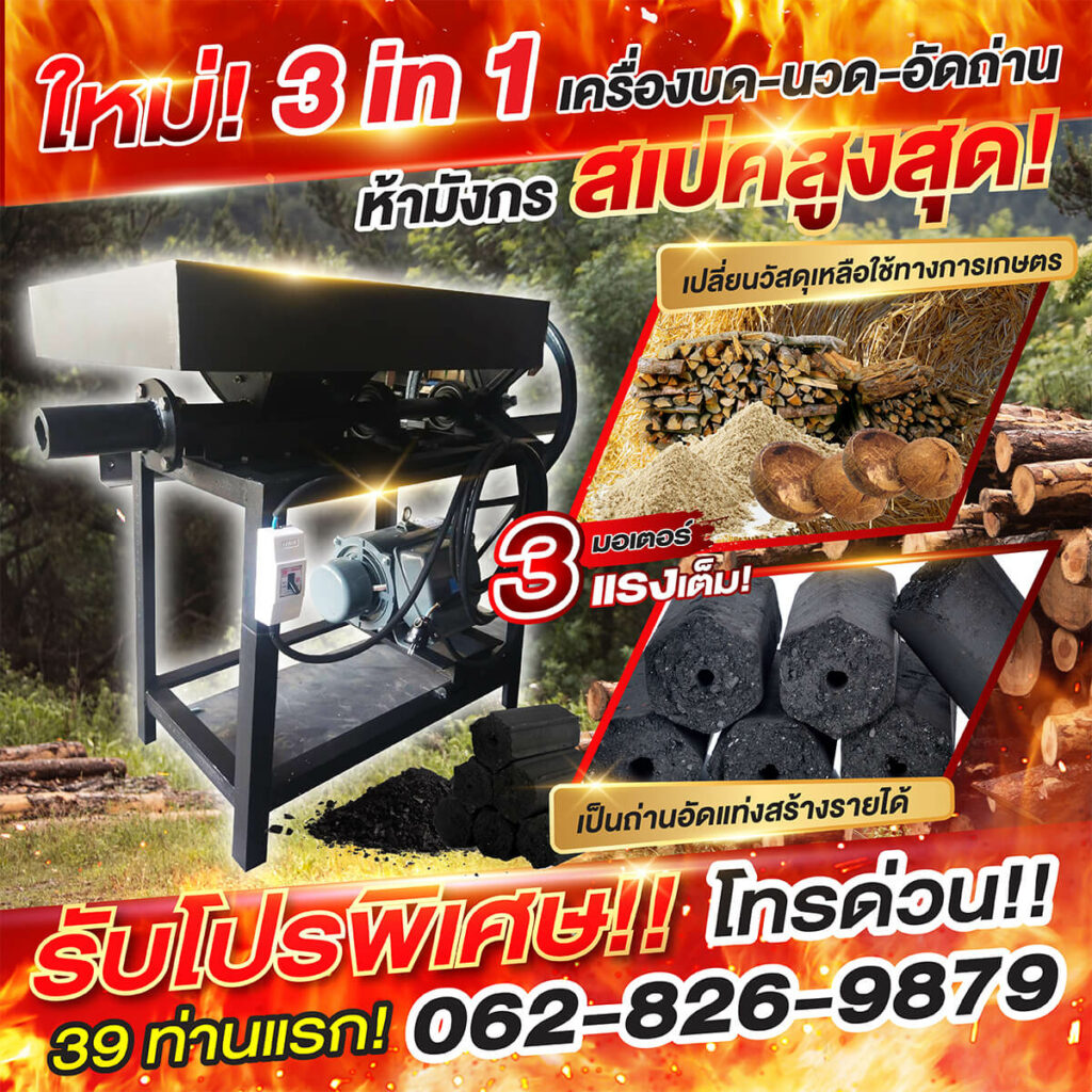 - “เครื่องอัดถ่าน เครื่องอัดถ่านแท่ง เครื่องอัดแท่งถ่าน ตราห้ามังกร” มีเกลียว บด+นวด+อัดถ่าน แข็งแรงทนทาน