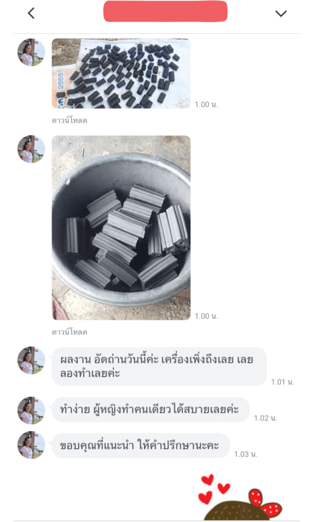 - ขายถ่านอัดแท่ง ให้ร้านขายของชำ หรื่อร้านค้าในพื้นที่แถวบ้าน