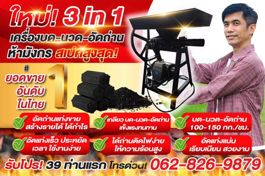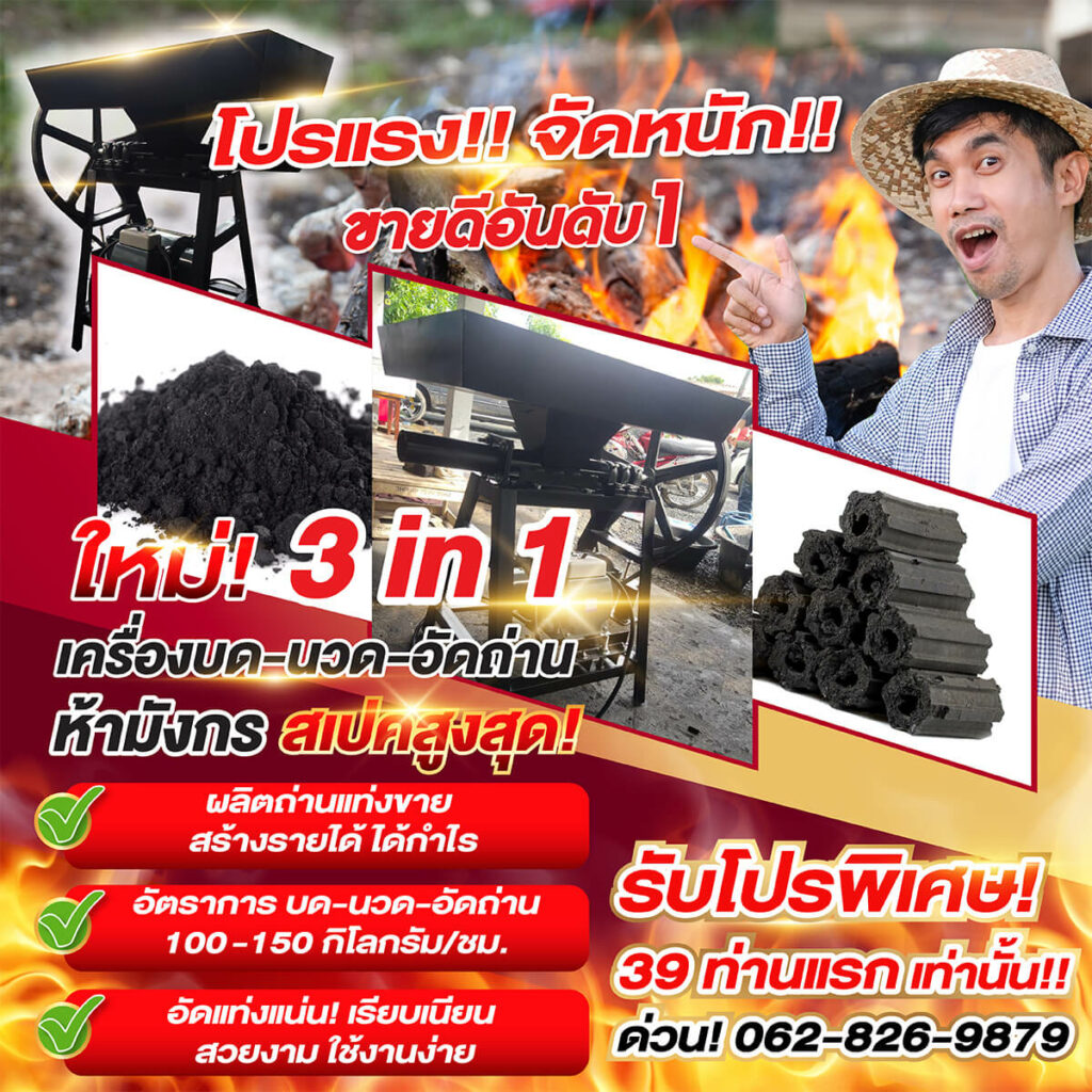- “เครื่องอัดถ่าน เครื่องอัดถ่านแท่ง เครื่องอัดแท่งถ่าน ตราห้ามังกร” อัดได้เร็วมากๆ ประหยัดเวลา ประหยัดไฟ ใช้งานง่าย