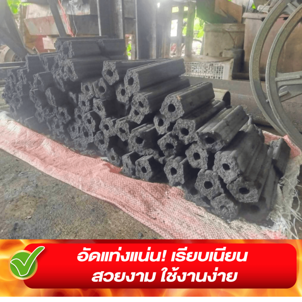 ✅ สามารถผลิตถ่านอัดแท่งคุณภาพสูง จากวัสดุเหลือใช้ทางการเกษตร เช่น